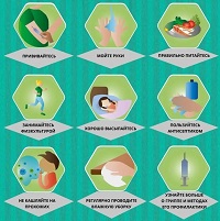 Необходимо избегать рукопожатий. После соприкосновений с ручками дверей, туалета, поручнями в общественных местах необходимо обработать руки антисептиком или тщательно вымыть. Не трогайте немытыми руками нос, глаза, рот.