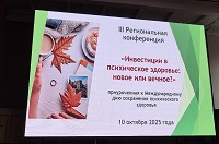 Участниками конференции «Инвестиции в психическое здоровье: новое или вечное?» стали около шестидесяти работников сферы образования, здравоохранения, социальной защиты, культуры, специалистов учреждений системы профилактики. Заслуженный Врач РФ, доктор медицинских наук М.Ю. Галактионова выступила с докладом «Профессиональное выгорание, как профессиональная болезнь». Марина Юрьевна осветила медико-психологические аспекты феномена; факторы, приводящие к психологическому и физическому истощению работников сферы образования и здравоохранения. В практической части конференции участникам были предложены мастер-классы «Сохраняйте спокойствие своего внутреннего мира». Практикующие психологи Е.Г. Миронова, В.В. Самышева и руководитель психологической службы ПсковГУ Н.Е. Немцова предложили участникам различные упражнения, позволяющие остановить бег, «заземлиться», разрешить себе другую роль, выйти из замкнутого круга забот и тревог. Творческим подарком присутствовавшим стало музыкальное выступление художественного руководителя Тямшанского ДК Ольги Шалободовой. Мероприятие прошло «на одном дыхании». Такие передышки очень нужны тем, от кого ждут внимания, участия, энергии. Всем известно: чтобы отдавать, нужно быть наполненным. Сегодня участники конференции поистине получили «глоток живой воды». Благодарим наших спикеров за профессионализм, заместителя директора ГБПОУ ПО «Псковский политехнический колледж» Н.В. Костину за помощь в организации и проведении конференции. | |