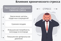 - Стресс активирует выброс адреналина и норадреналина, которые сужают сосуды и повышают давление. При регулярных стрессовых эпизодах развивается стойкая артериальная гипертензия, которая перегружает сердце, повреждает сосуды и увеличивает риск инфаркта и инсульта.
